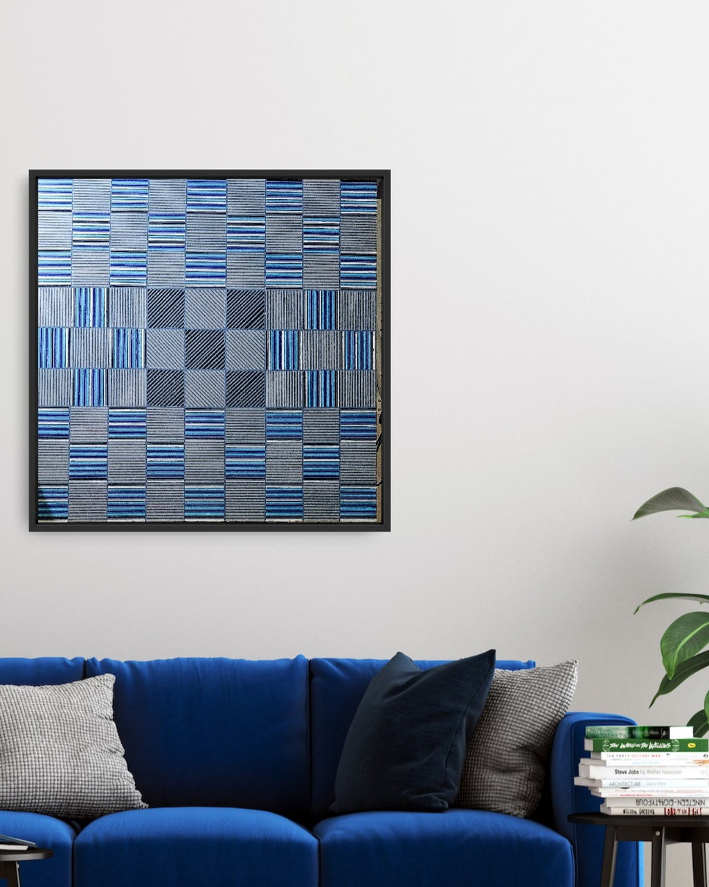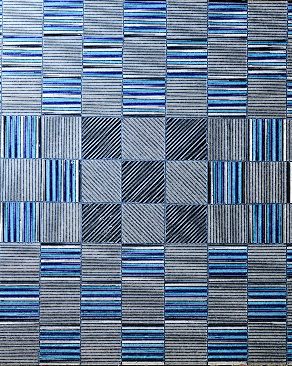 "Intervals of Blue" hard-edge linear geonemtric patterned design. Free Shipping