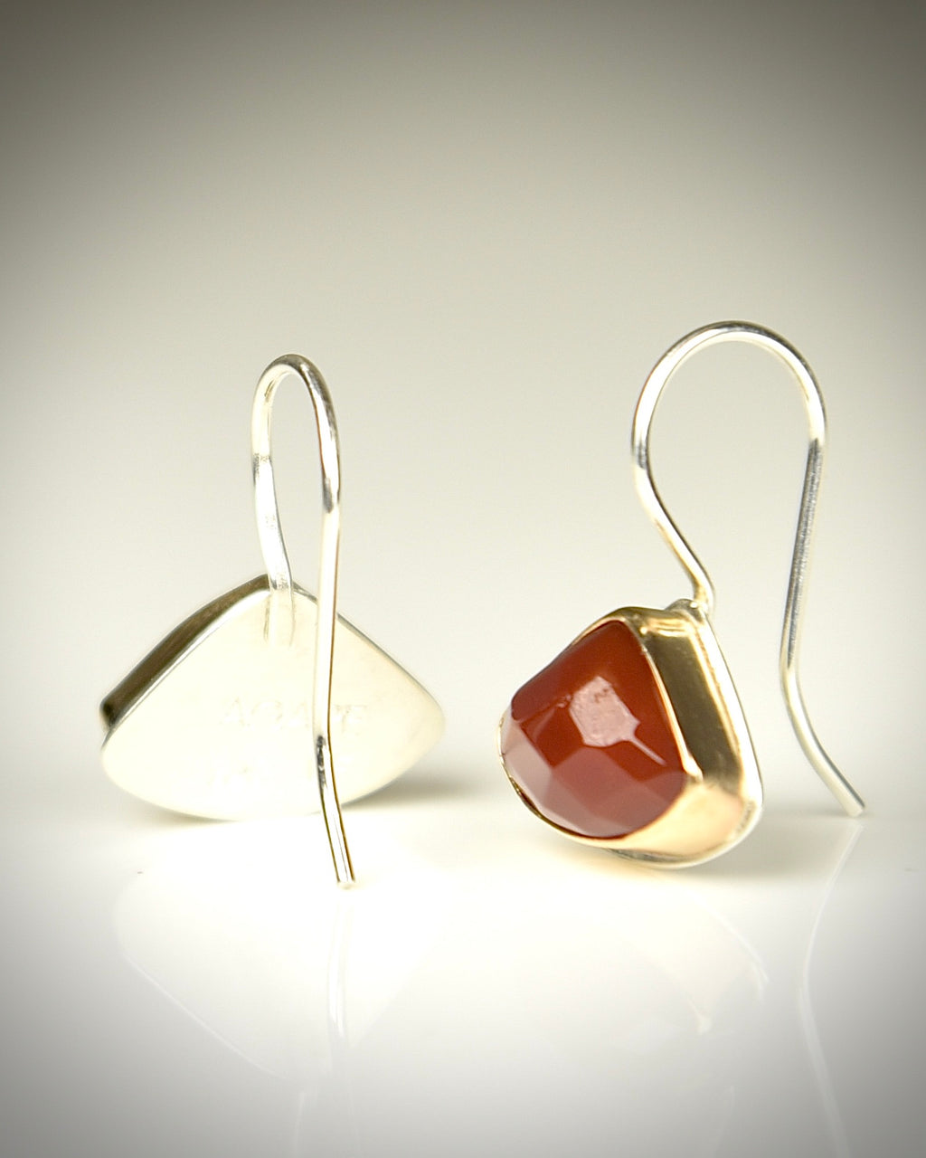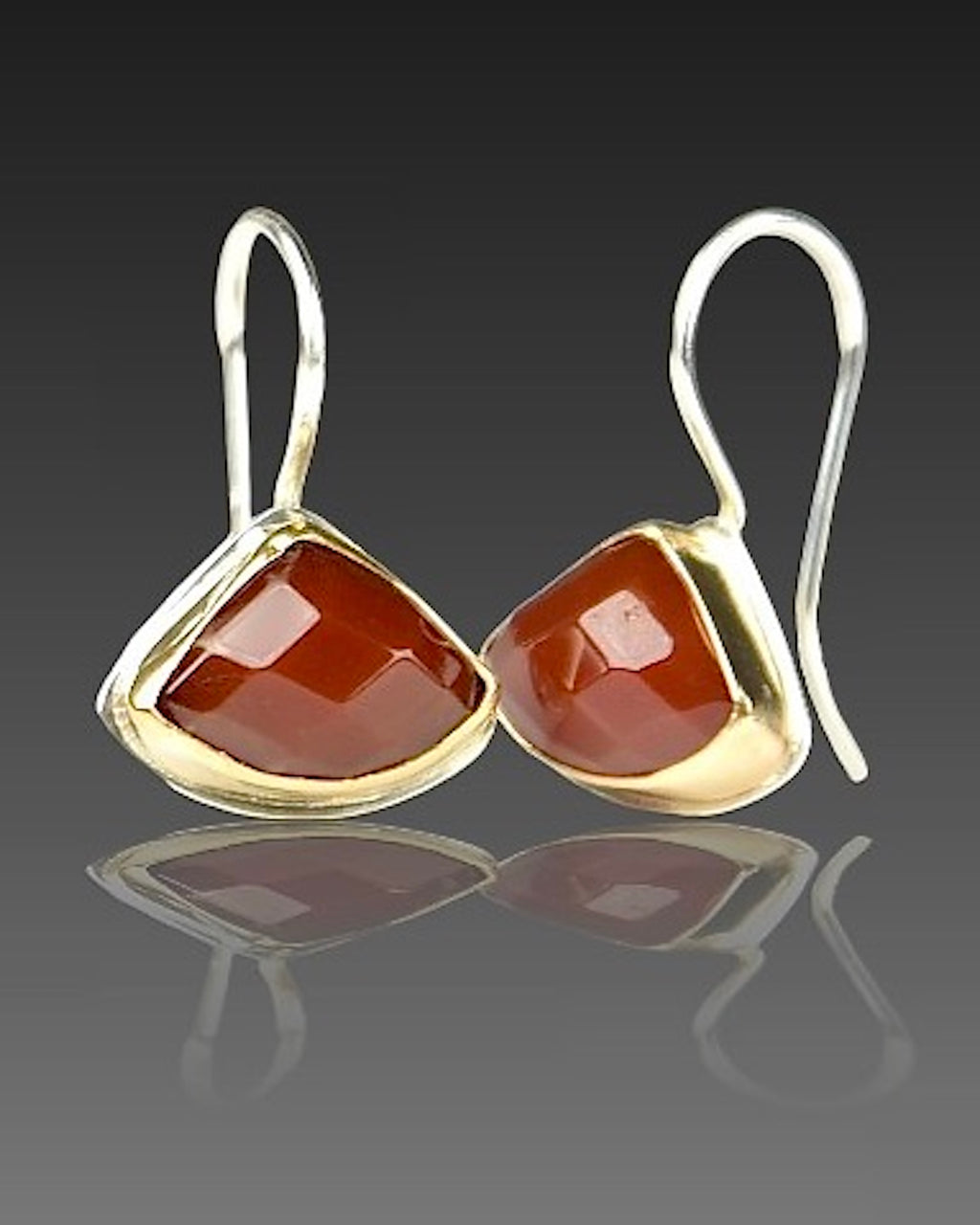This understated pair features beautifully faceted carnelian set in handcrafted 14k Gold Fill and Sterling silver setting on French style ear hook.