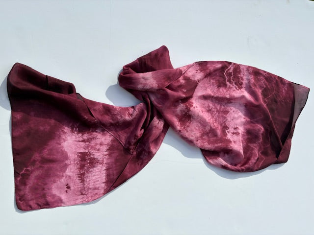 100% Silk Scarf 70" x 22" • This scarf is incredibly lightweight, the perfect year-round accessory! • We go low and slow harnessing the power of the Arizona sun to heat and activate the dye bath. • Hand Wash separately • Art to wear, southwest style, tie
