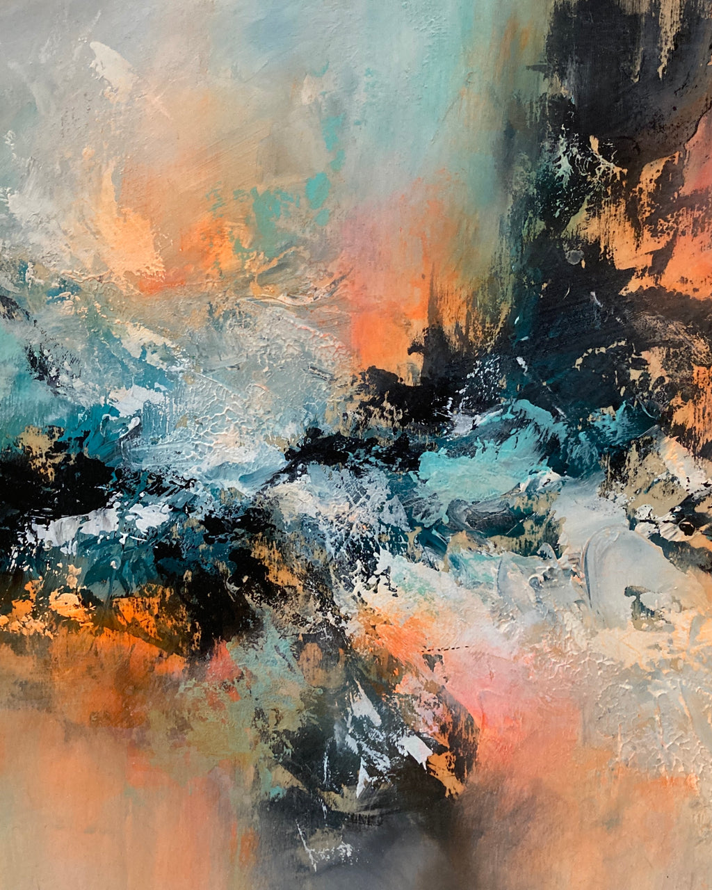 Ethereal eruptions of color and form, acrylic on cradled wood panel. Sides painted black.