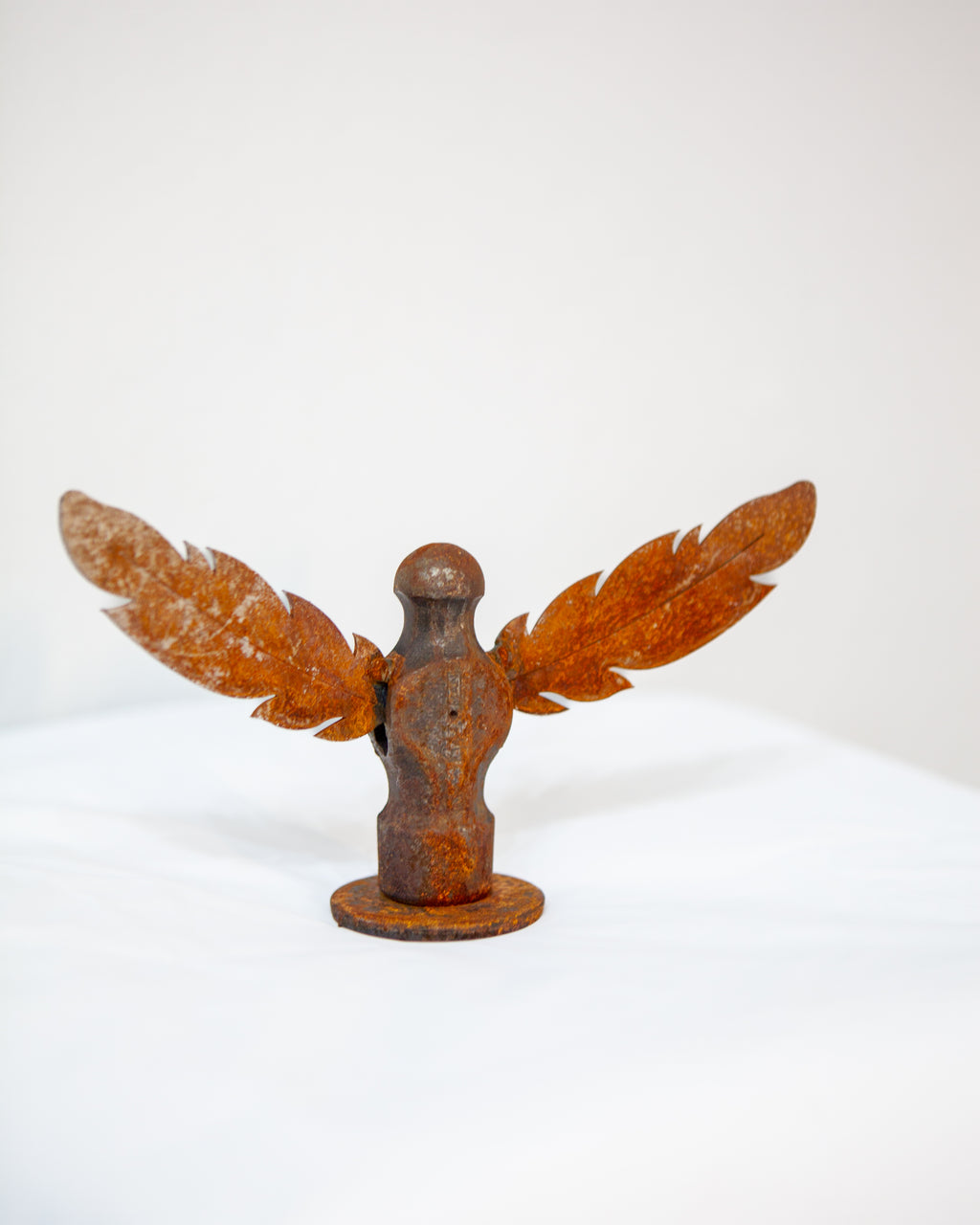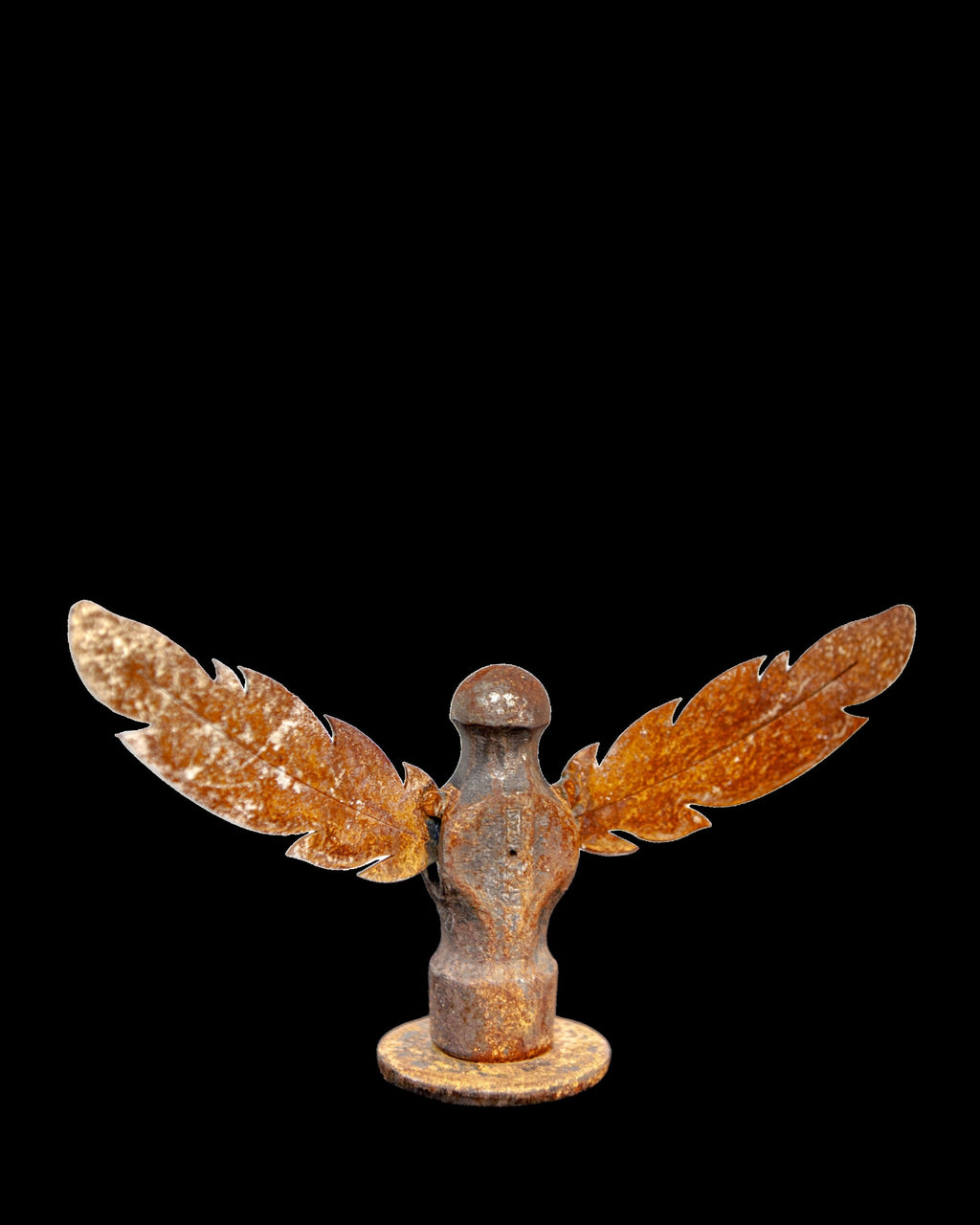 A little angel, made from a ball peen hammer and some machine cut wings.
