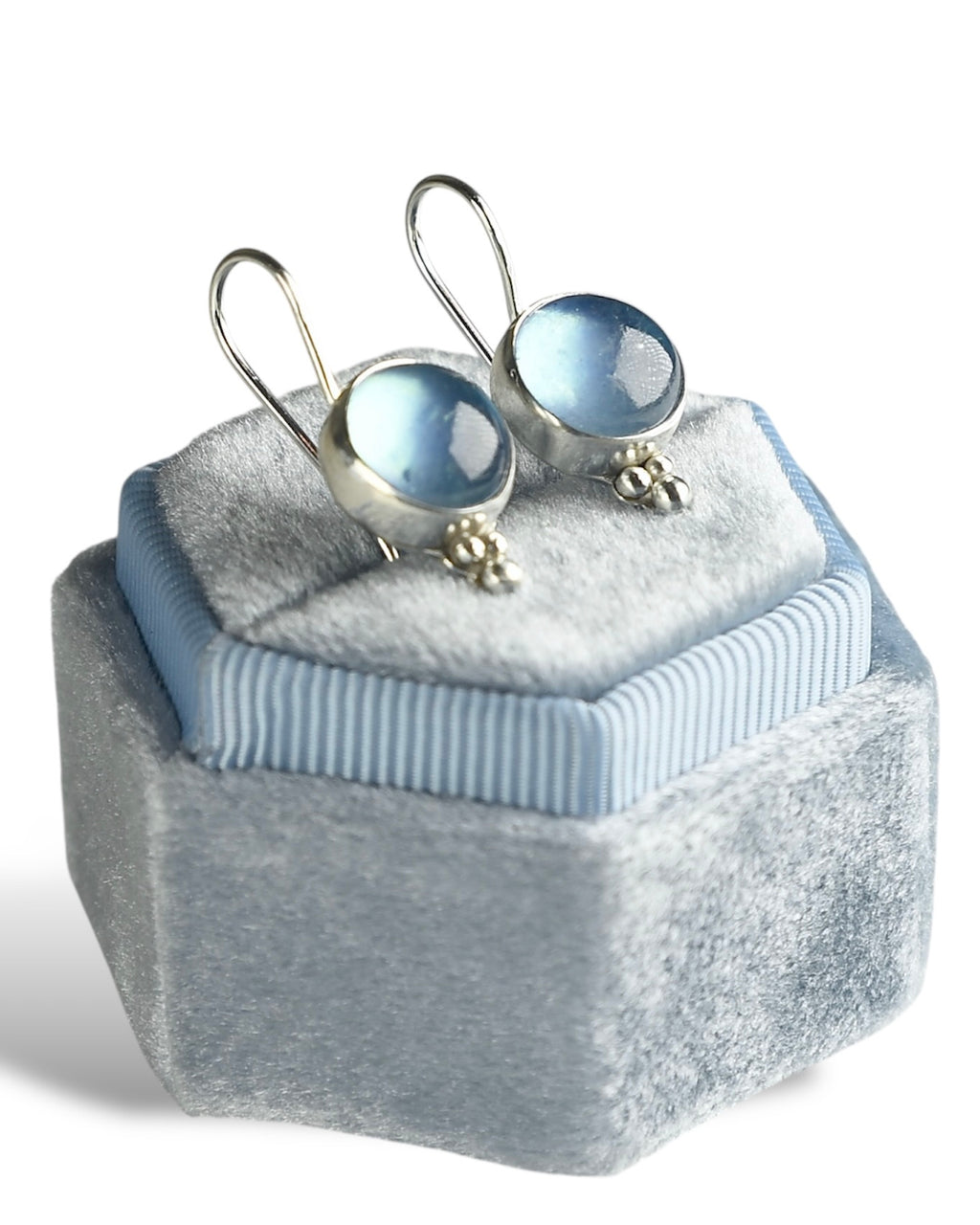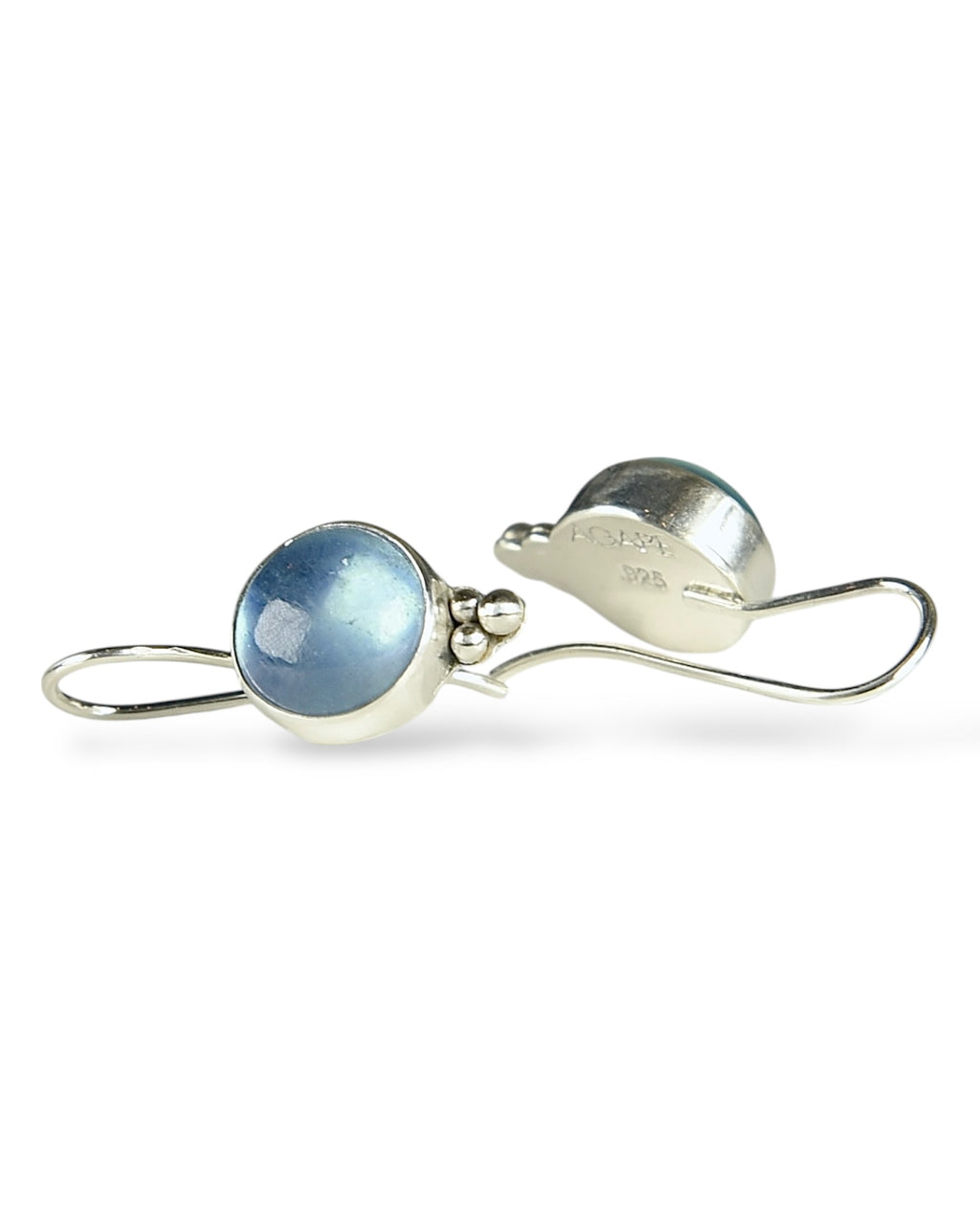 Glowy round all natural aquamarine beautifully set in sterling silver with a trio of granulation.