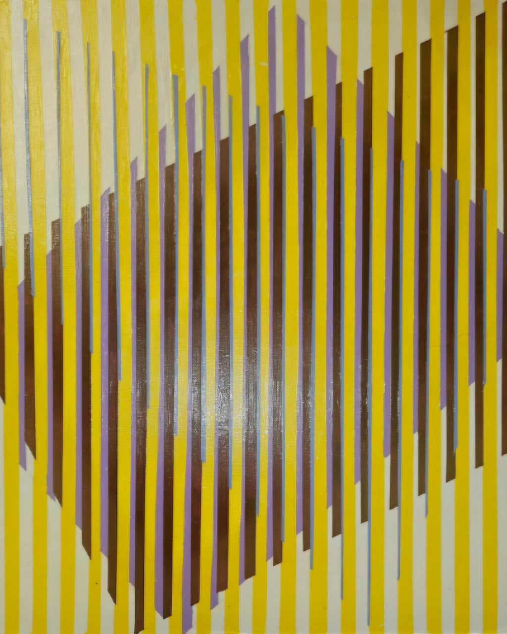 Bold geometric abstraction multi-colored hard-edge linear design.
